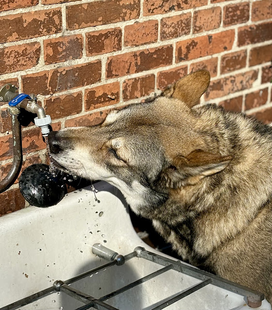 Henny brengt mij naar Wedde en we worden vrolijk ontvangen door Raven, een prachtige Saarlooswolfshond.